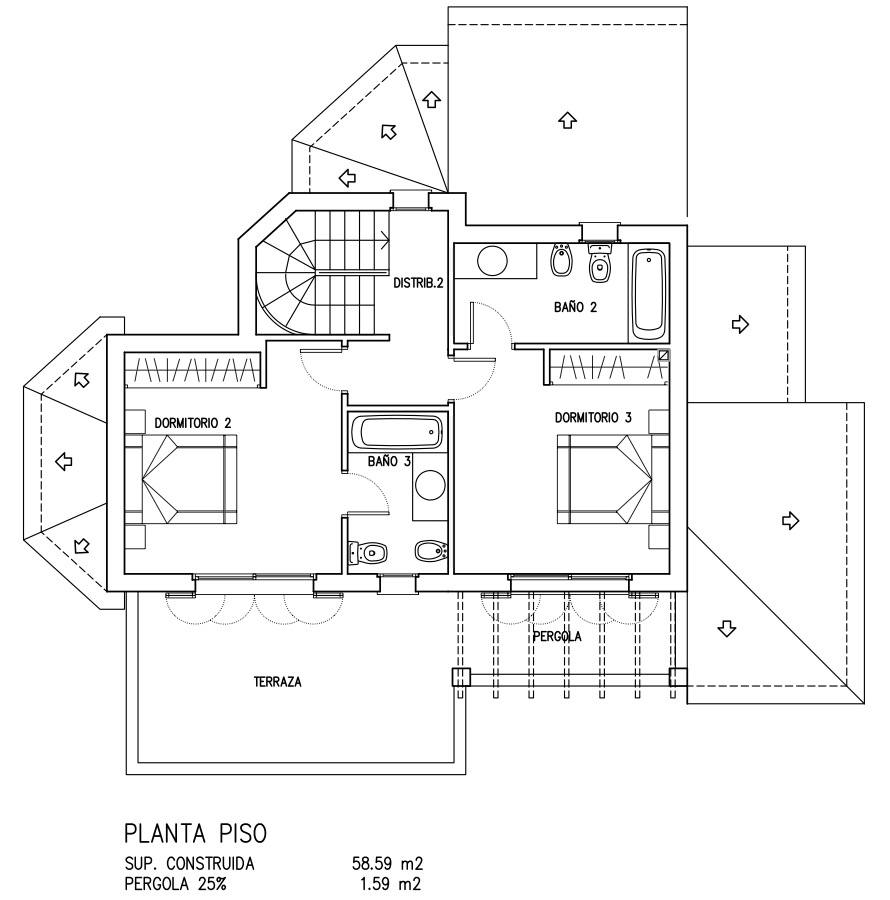 Obergeschoss mit 59 qm Wohn / Nutzfläche, 2 Schlfräumen und 2 Bädern en Suite