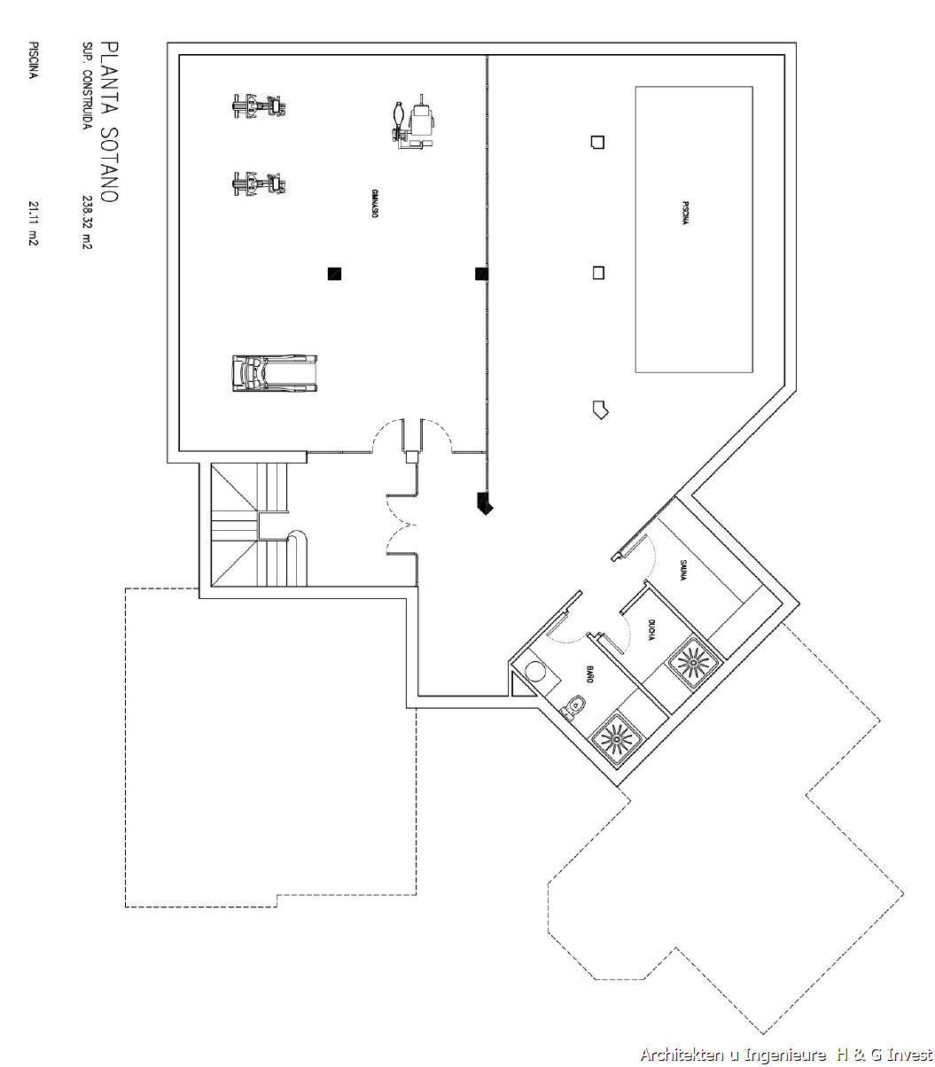 | Keller - Geschoss mit beheiztem Pool, Wellnes - Raum, Gym - Raum, Sauna, Raum für Technik innen und aussen |
