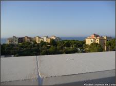 Die Bauweise ist 2 geschossig, mit Treppenaufgängen im Innenbereich bis hinauf zu der grossen Dachterrasse.