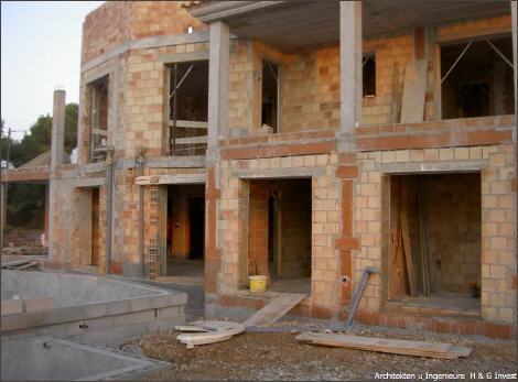 | Aus den vorhandenen Plänen: ANSICHT VORN - 280 qm Wohn / Nutzfläche, 600 qm grosses Grundstück. - IST Stand - begonnener Rohbau, in der Urbanisation Cala Pi Vallgornera, erschlossen, mit Meerblick, mit einer Baugenehmigung. |